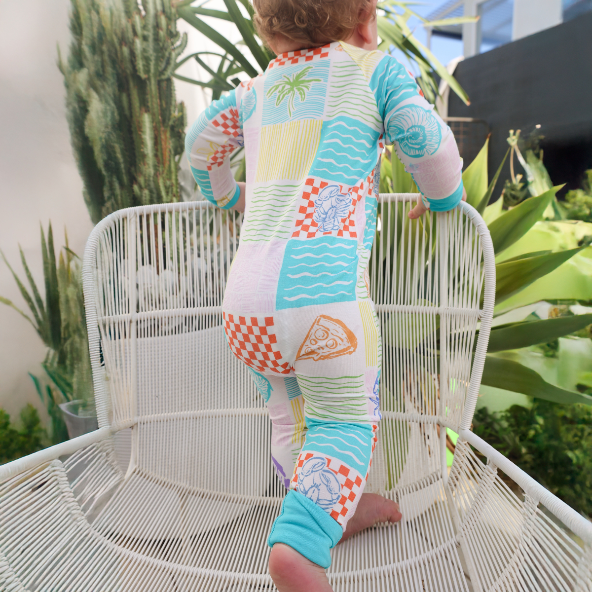 Zipsters are made with 5% elastane, so they have a lovely stretch to them and therefore last longer than other baby grows.