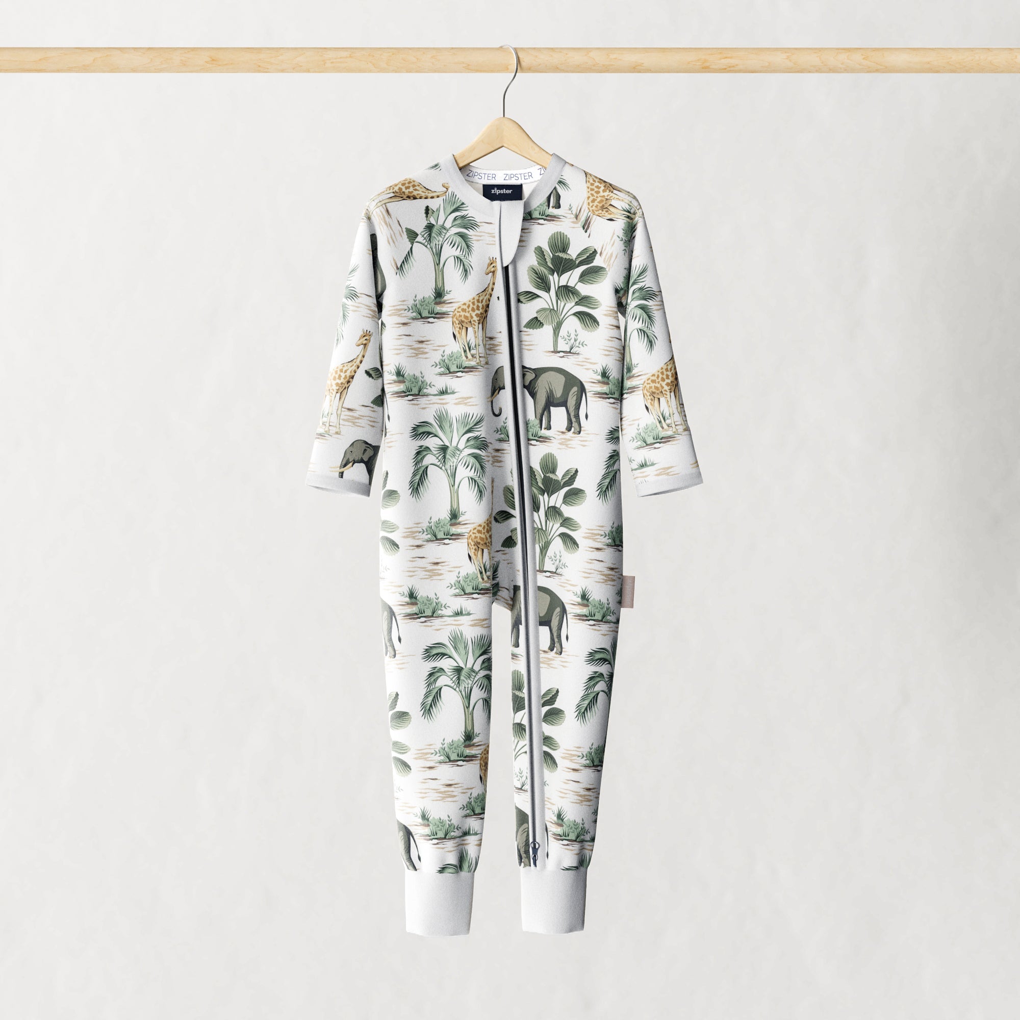 Zipster bamboo baby romper with double zip in jungle motif