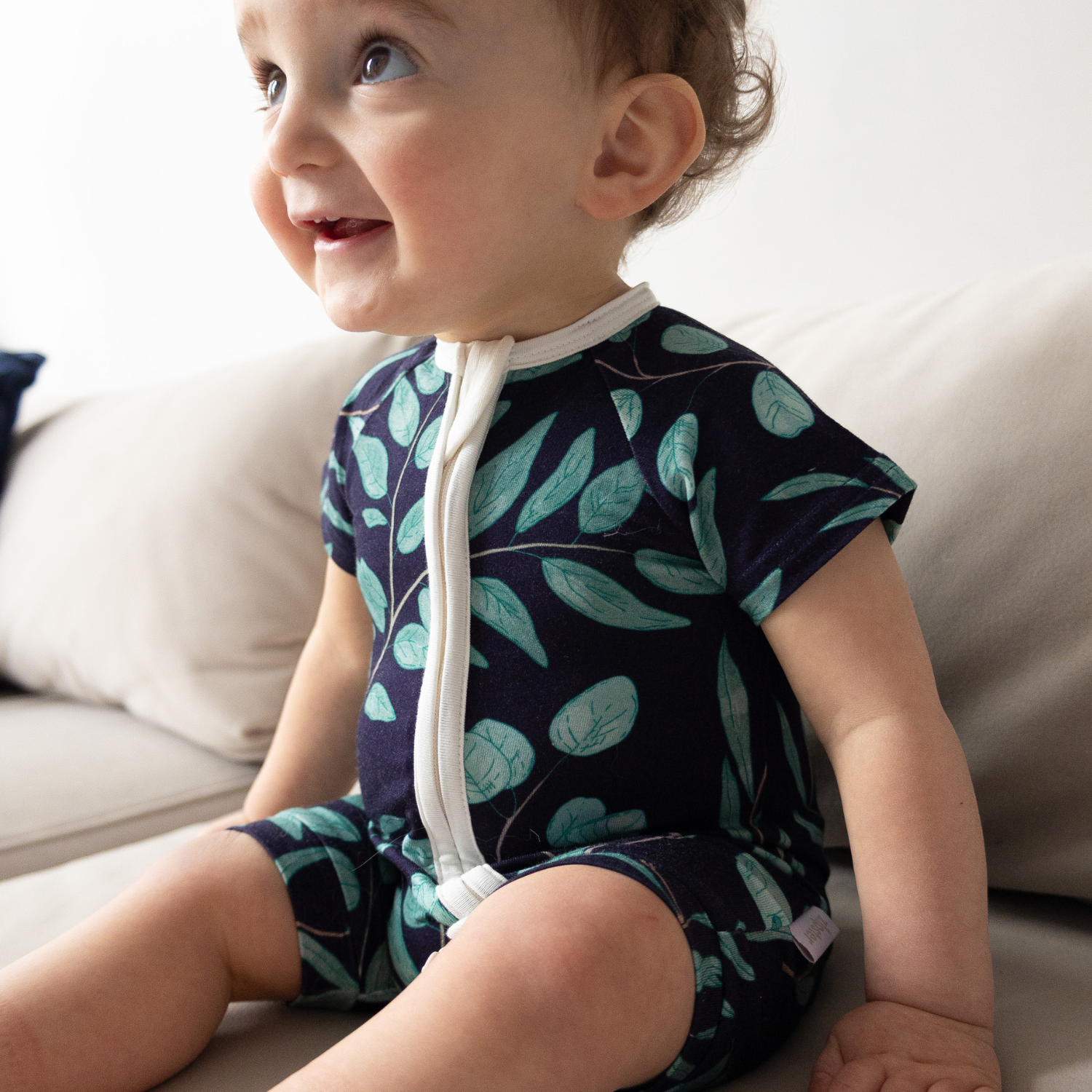 - Gemaakt van superzacht en rekbaar 95% bamboe en 5% elastaan. Het is zacht voor de huid van je baby en door zijn kwaliteiten het hele jaar door perfect. Bekijkhier waarom we zo dol zijn op bamboe .